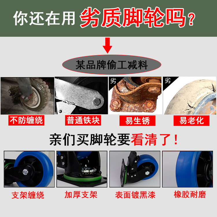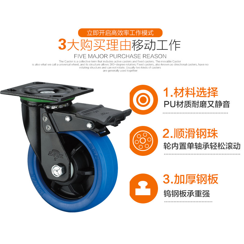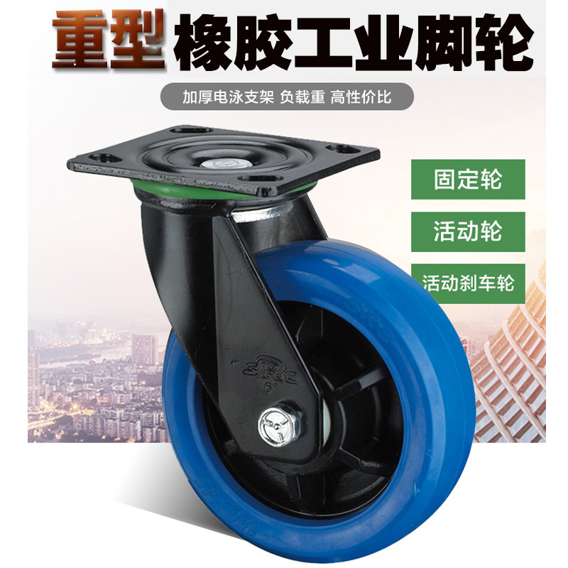 Xiangrong SRC casters 4 5 6 8 inch blue rubber sound quiet heavy-duty shelf trolley trolley universal wheel