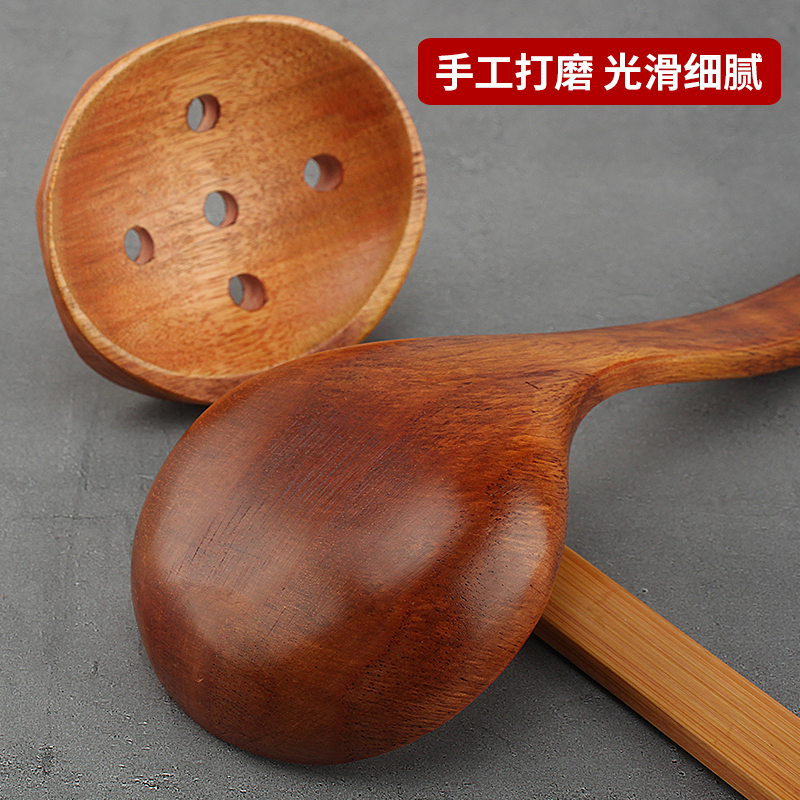 Wooden long handle large soup ladle Japanese style pull-in-face spoon Spicy Hot large Number of Leaking Spoon Domestic Commercial Hotel Restaurant Customised