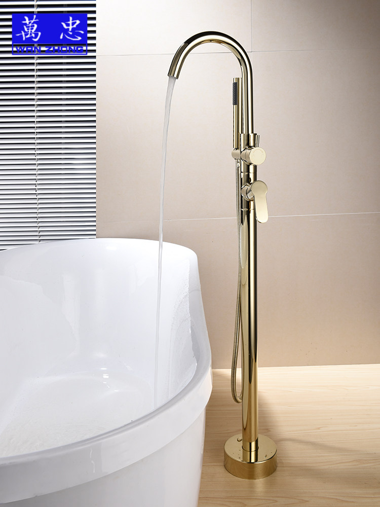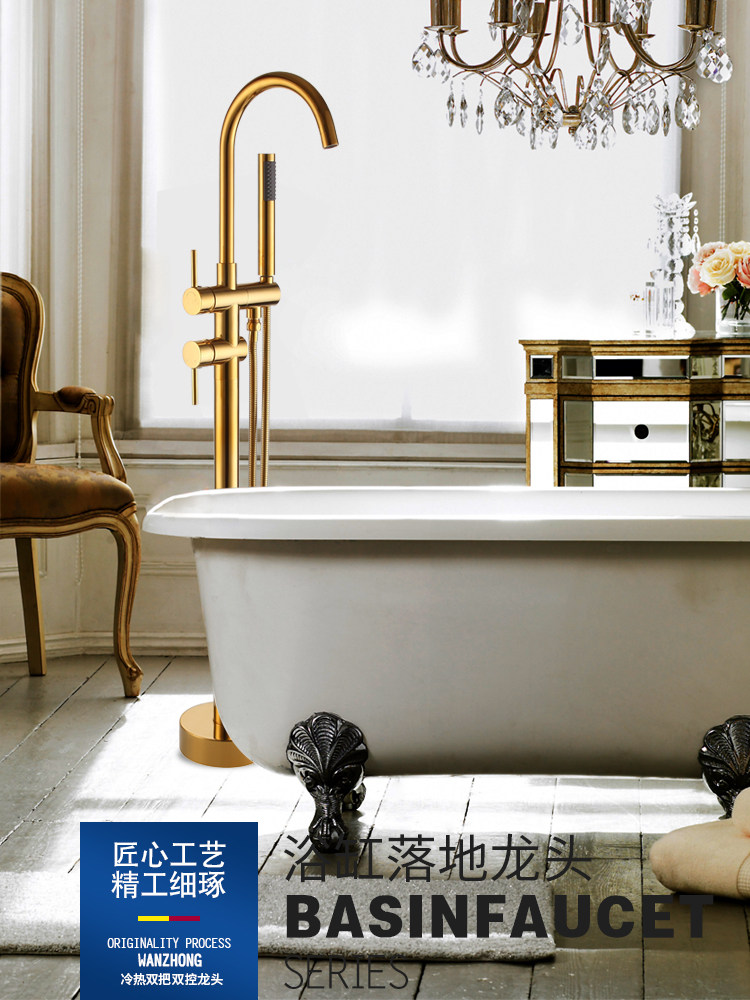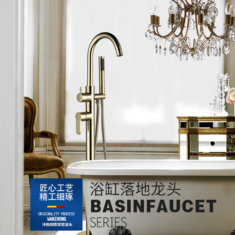 Wanzhong Nordic gold bathtub faucet cold and hot all-copper gold tap landing tub shower and shower suit