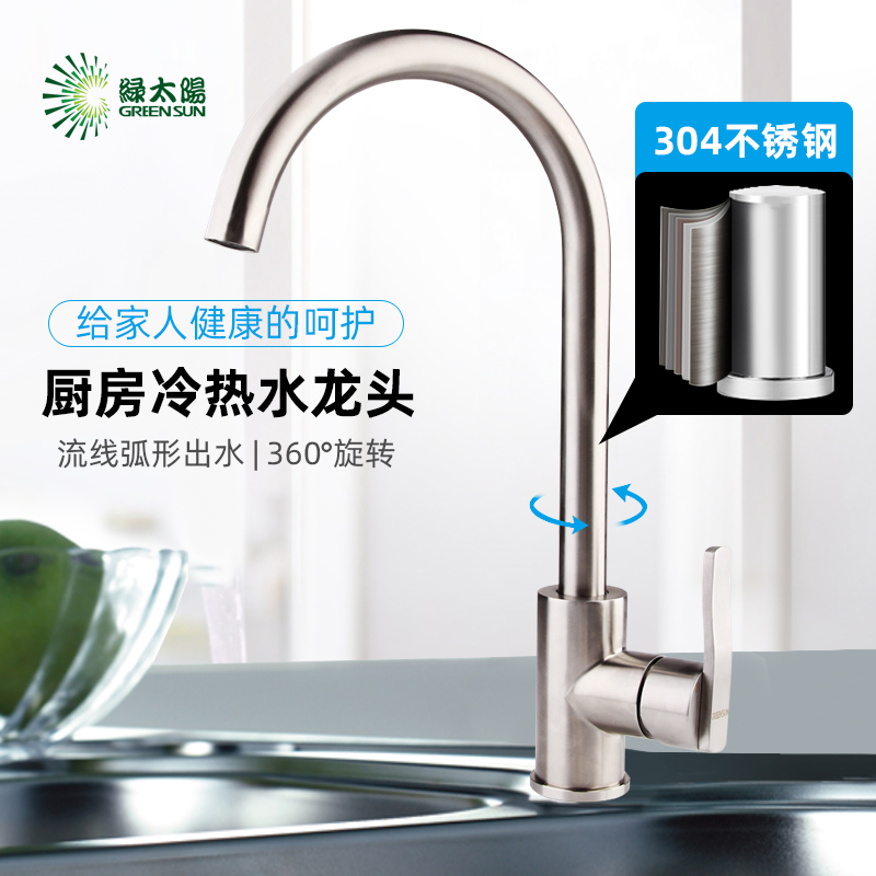 Green sun household kitchen faucet wash basin faucet Hot and cold stainless steel rotating sink faucet A39711