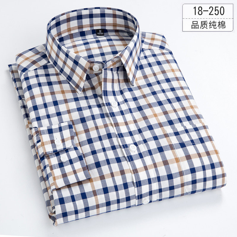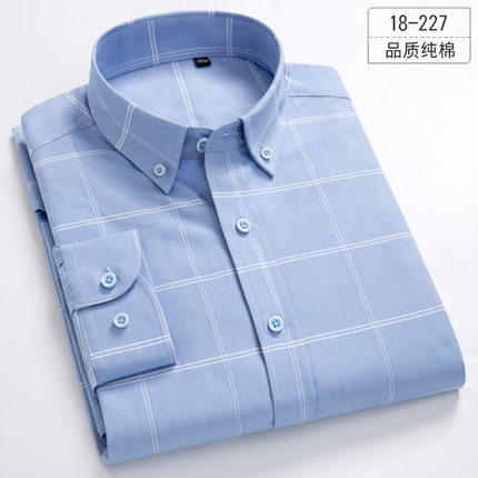 Spring and summer plaid shirt men's long-sleeved cotton youth Korean slim-fit non-ironing inch shirt Thin section cotton short-sleeved shirt
