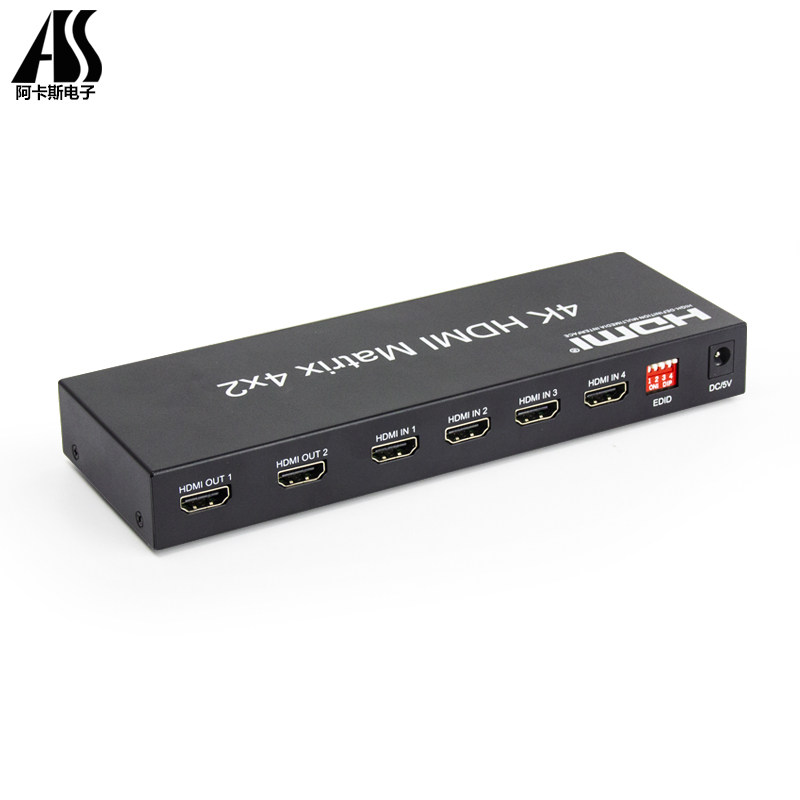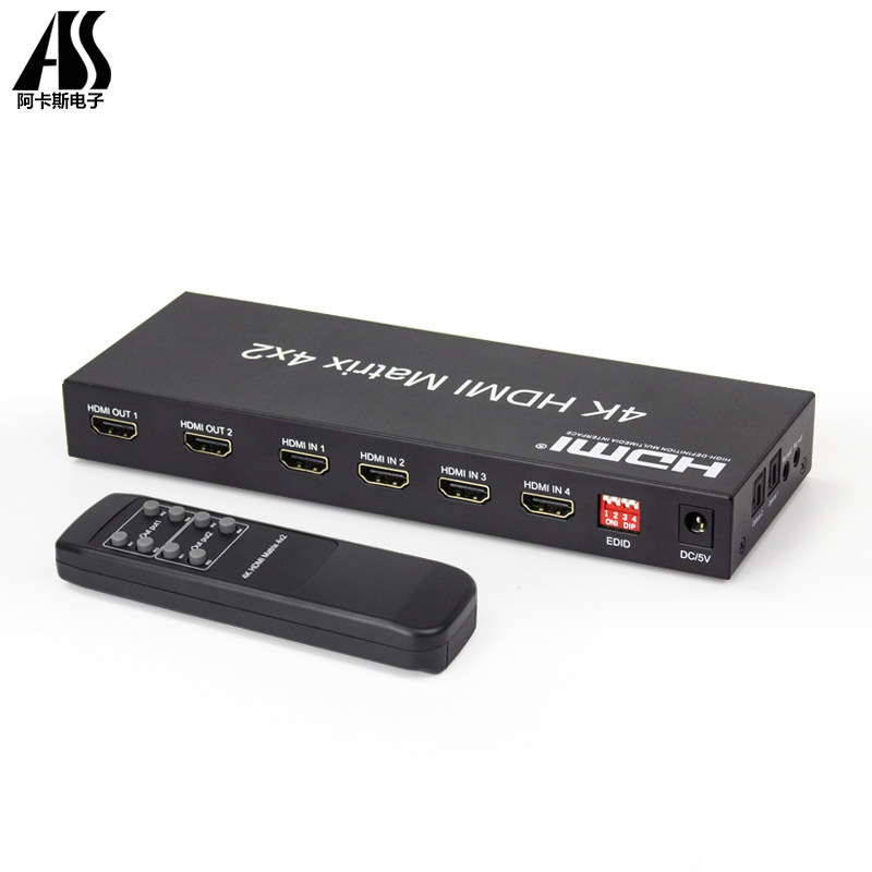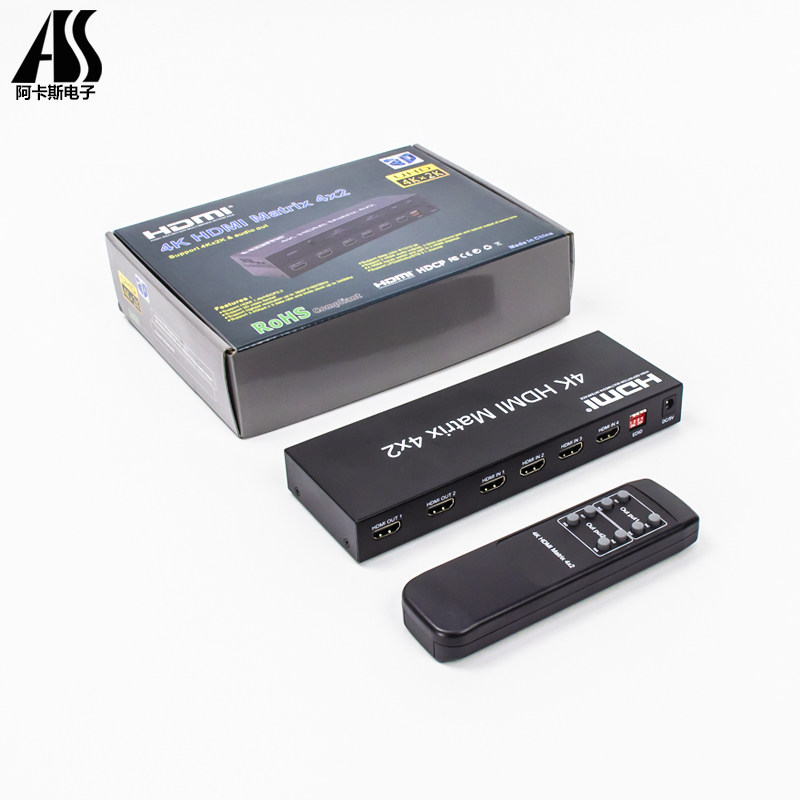 HDMI splitter four-in-two-out switcher computer with audio HD connector audio 4-in-2-out 4K divider