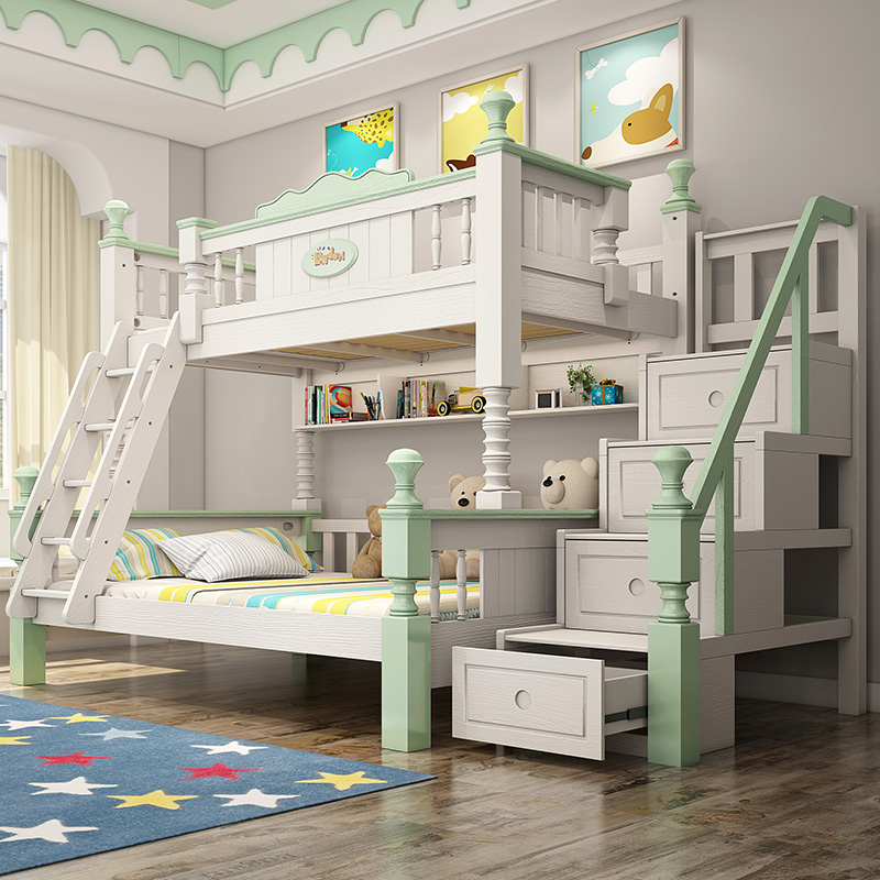 American high and low bed children's bed all solid wood upper and lower wooden bed bunk bed boy castle bed small fresh