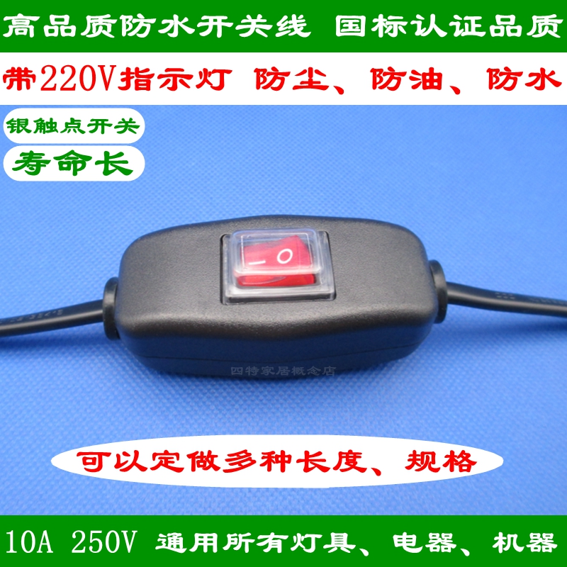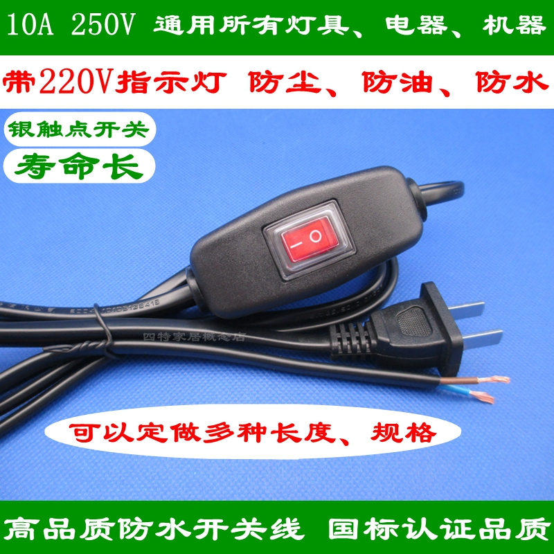 Waterproof switch 2 foot plug wire with lamp warp switch / rain - proof bathroom outdoor switch 10A