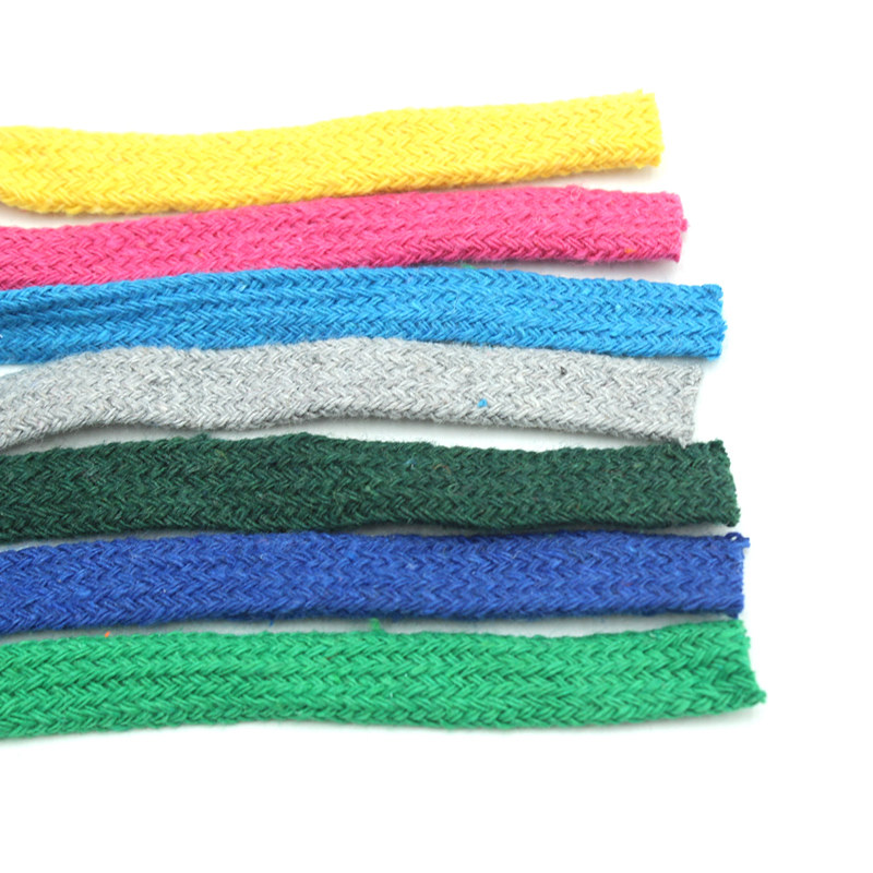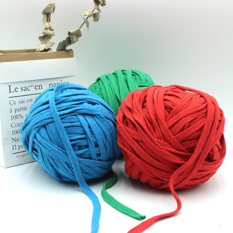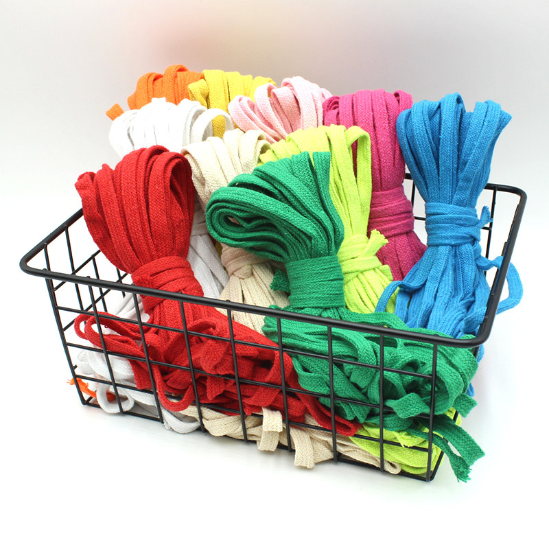 1cm Wide Colored Flat Cotton Rope Handmade Diy Woven Carpet Bag Bunch Mouth Rope Sporting Pants Trim cotton thread rope