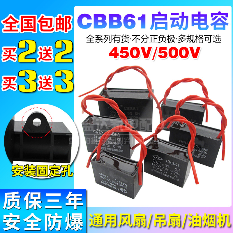 CBB61 electric fan start capacitor 1 2 1 1 5 1 8 2 5 2 7 3UF Universal ceiling fan range hood 450V