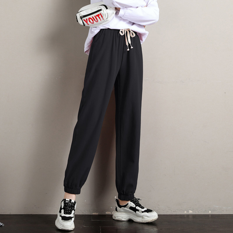Casual pants loose bunches Ice Silk Lamp Cage Pants Spring Autumn Sports Pants Women Summer Thin swarm pants 2021 New