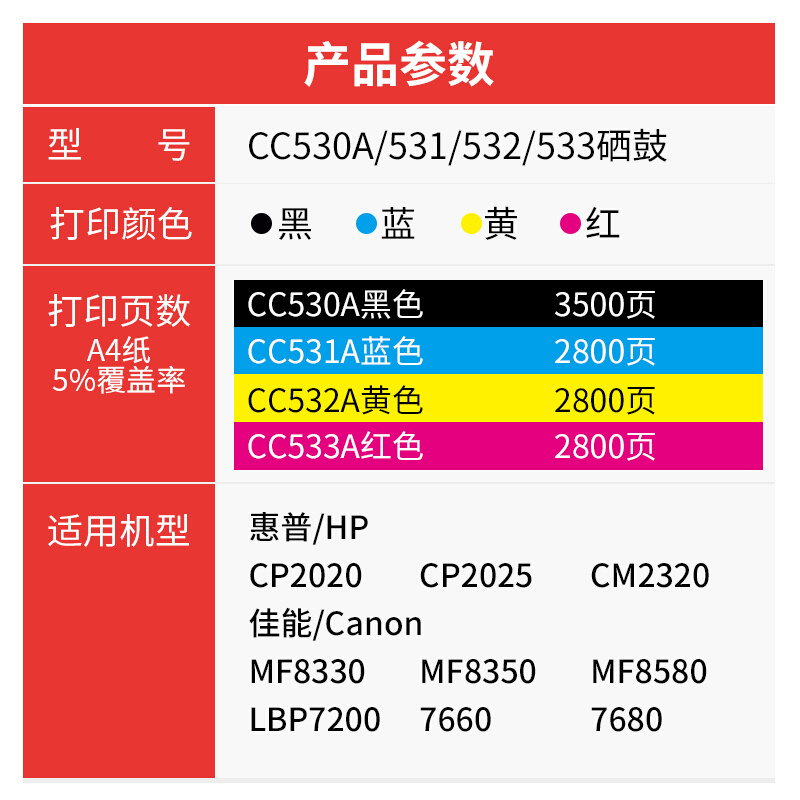 CC530A Toner Cartridge 304A Toner Cartridge (four-color set) CC530A Toner Cartridge 304A Toner Cartridge 3500 Pages (Black)