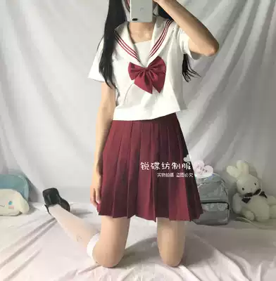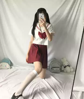 jk uniform Orthodox student Japanese sellarine short-sleeved summer Milky White shirt dark red skirt two-piece set