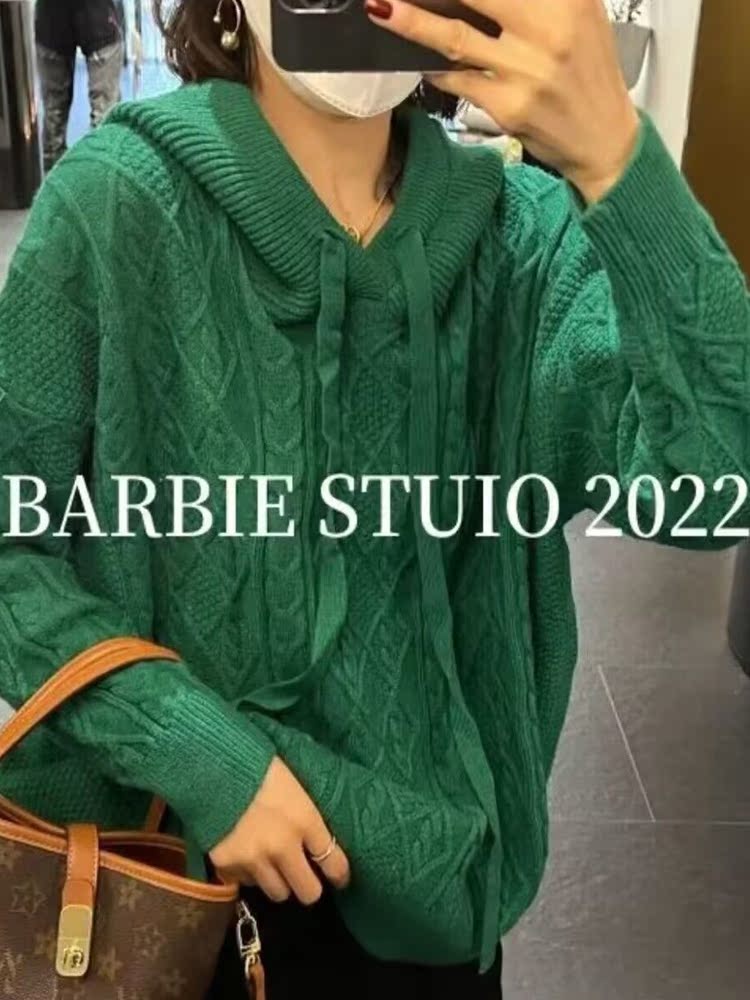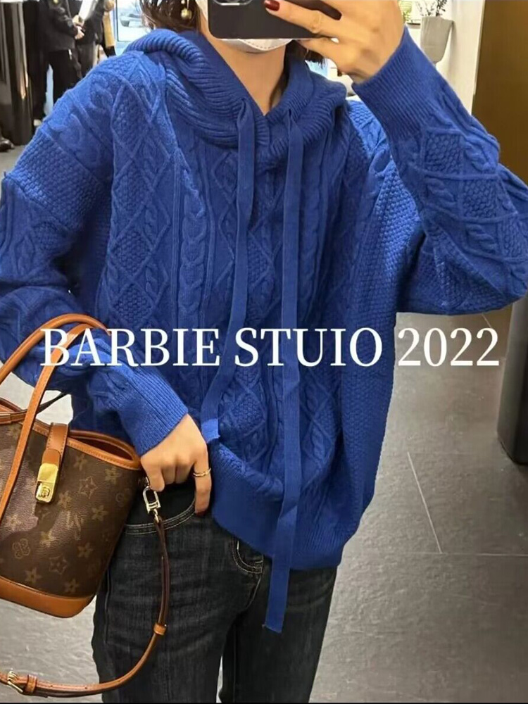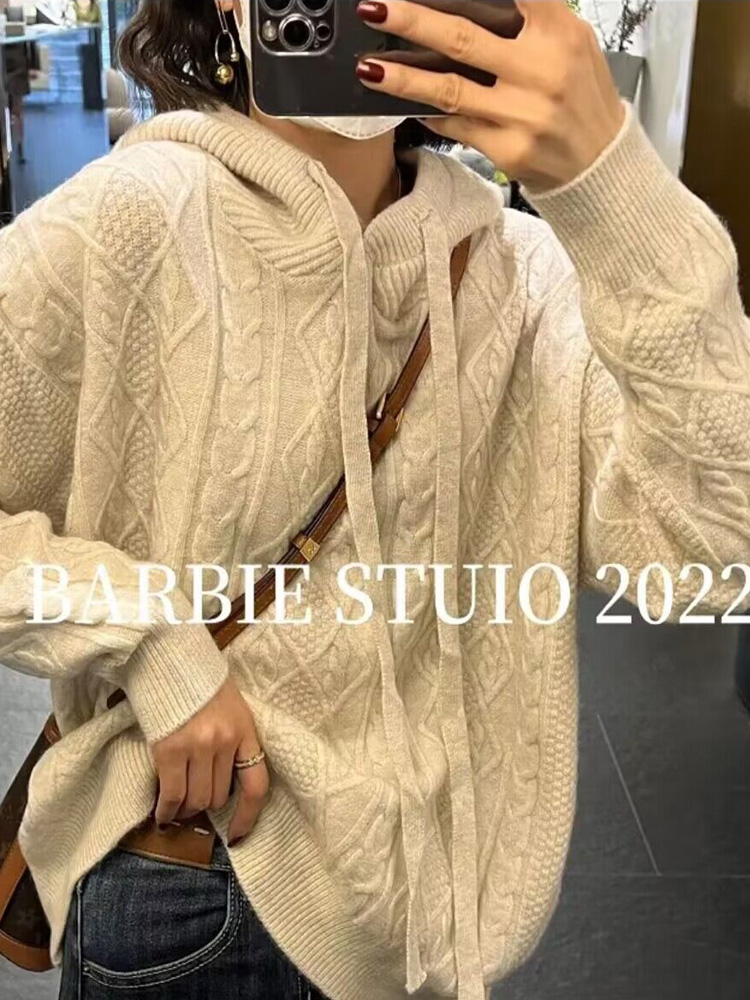 European station twist hooded sweater women's lazy style casual loose top versatile fashion bottoming sweater jacket