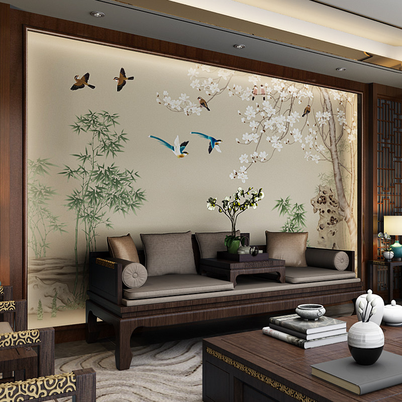 New vegan Flowers Bird integrated plate Wall Living room Decoration TV Background Highlight Painting Chinese bedroom Wood-wood fiberboard