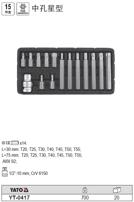 Easy Rio Tinto YATO tool 15 pieces 10MM midhole star screwed head set screw opener batch head YT-0417
