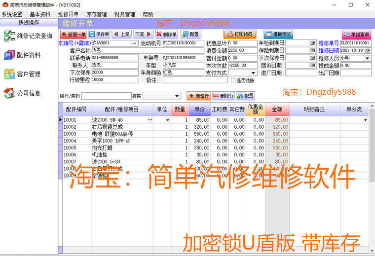 Genuine simple auto repair management system Auto repair factory Quick repair beauty 4S shop purchase and sale storage auto parts software