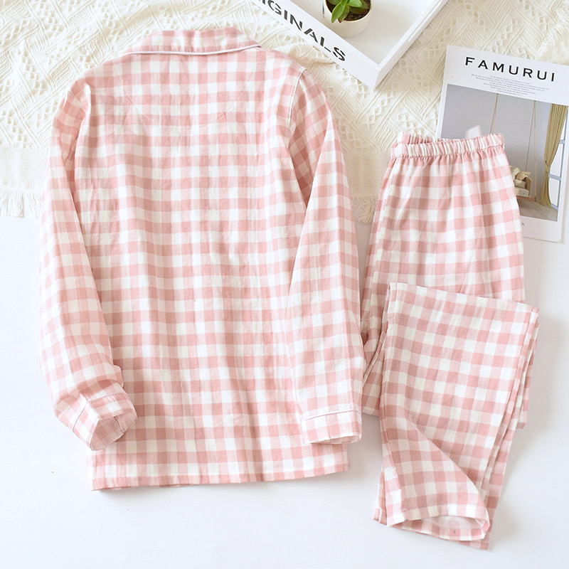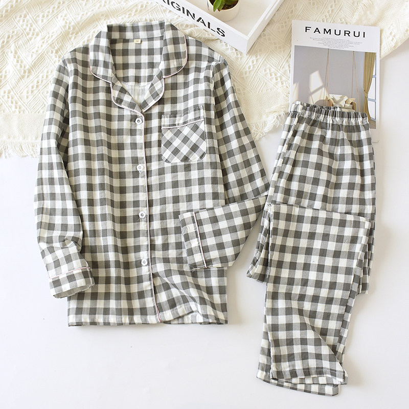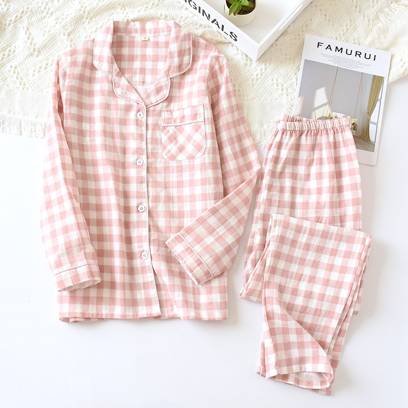 Spring and Autumn Lovers Pure Cotton Double Layer Gauze Day Style Summer Thin style Long sleeves Men and women All cotton Home Sleeping Suit Pants Set of women