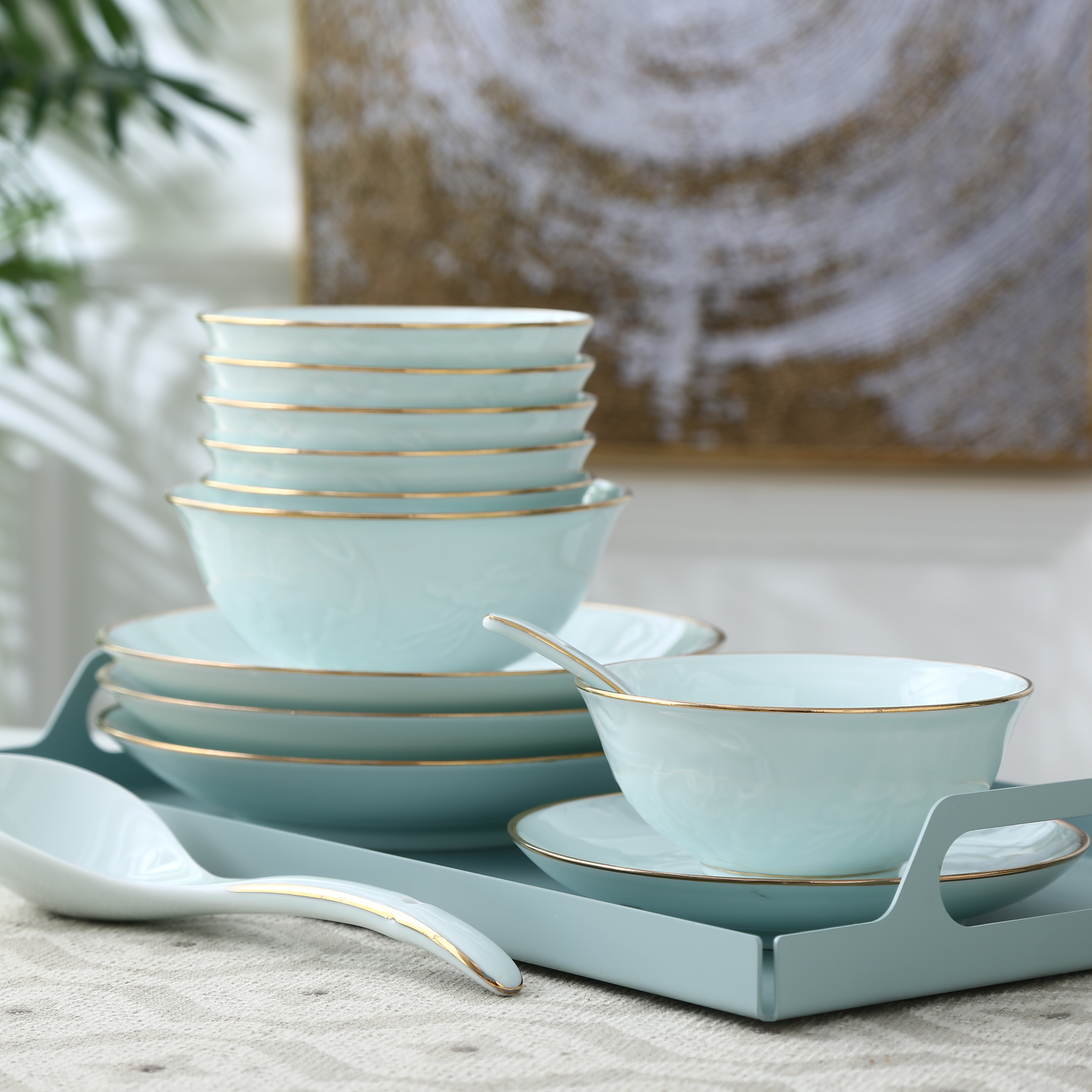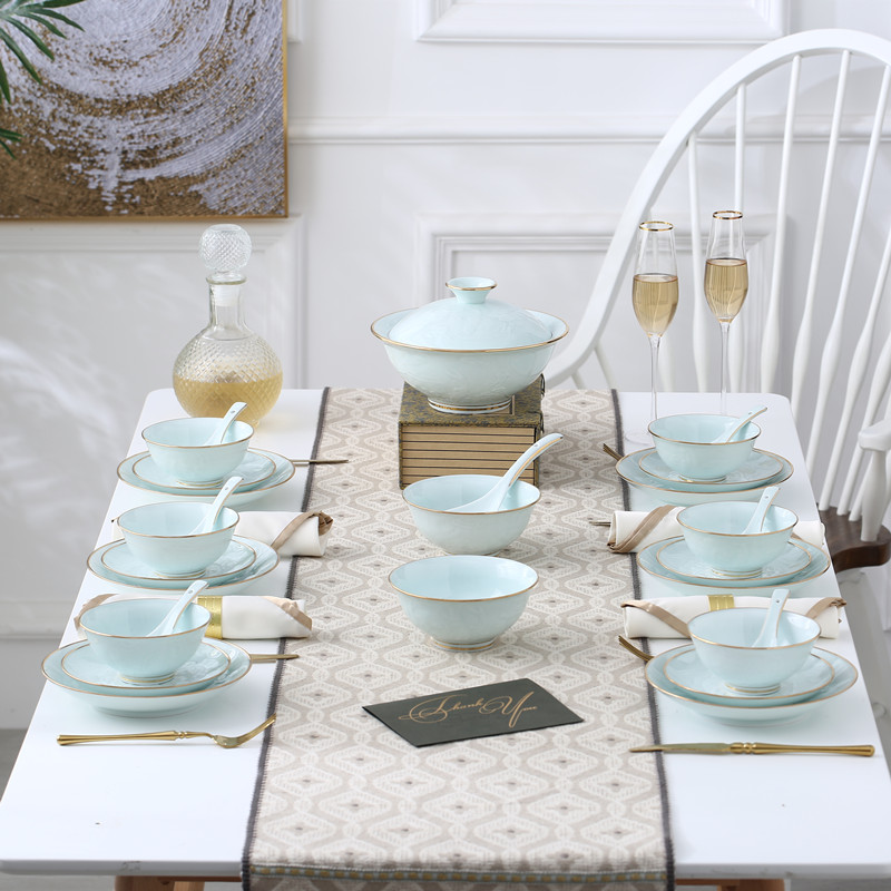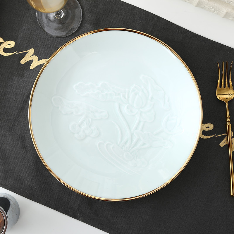 Light glazed white jade porcelain Jingde Ceramic Sculpture Lotus with gold shadow tableware bowl household package European gift