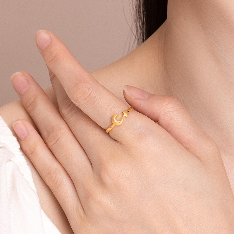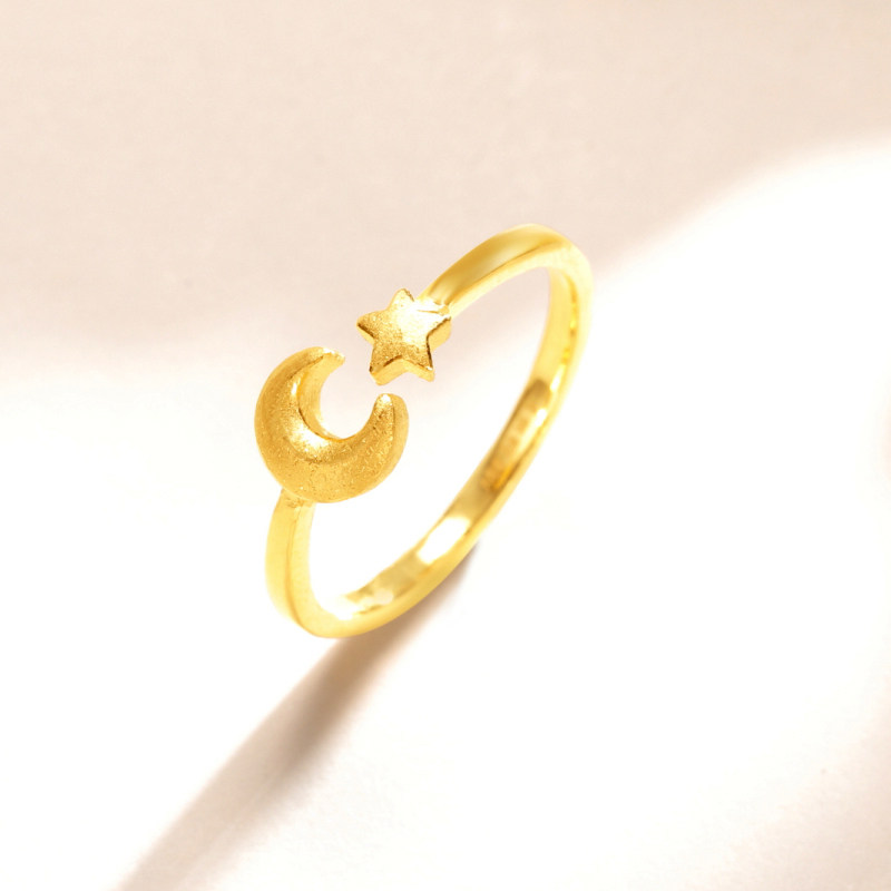 Liuguifu Jewelry Star Moon Gold Ring Pure Gold 999 Ring Open Ring Hand Jewelry Women's