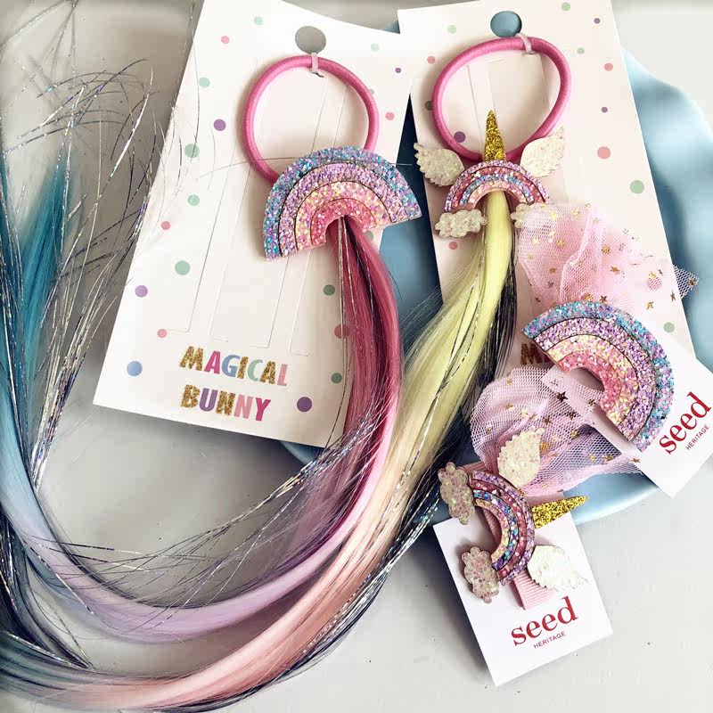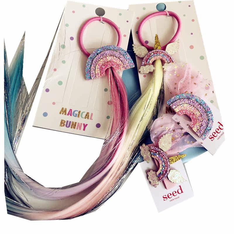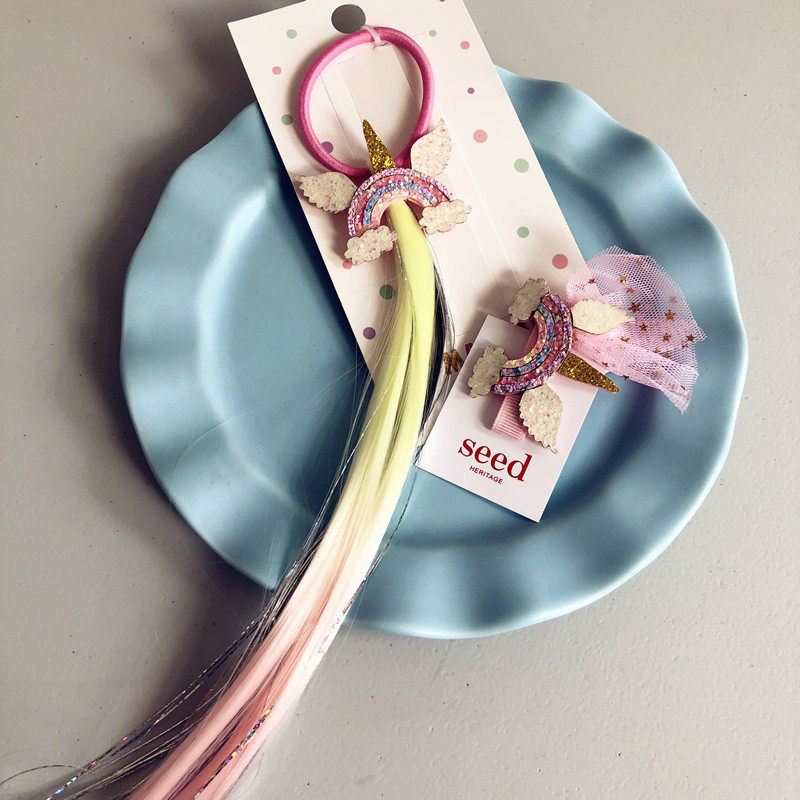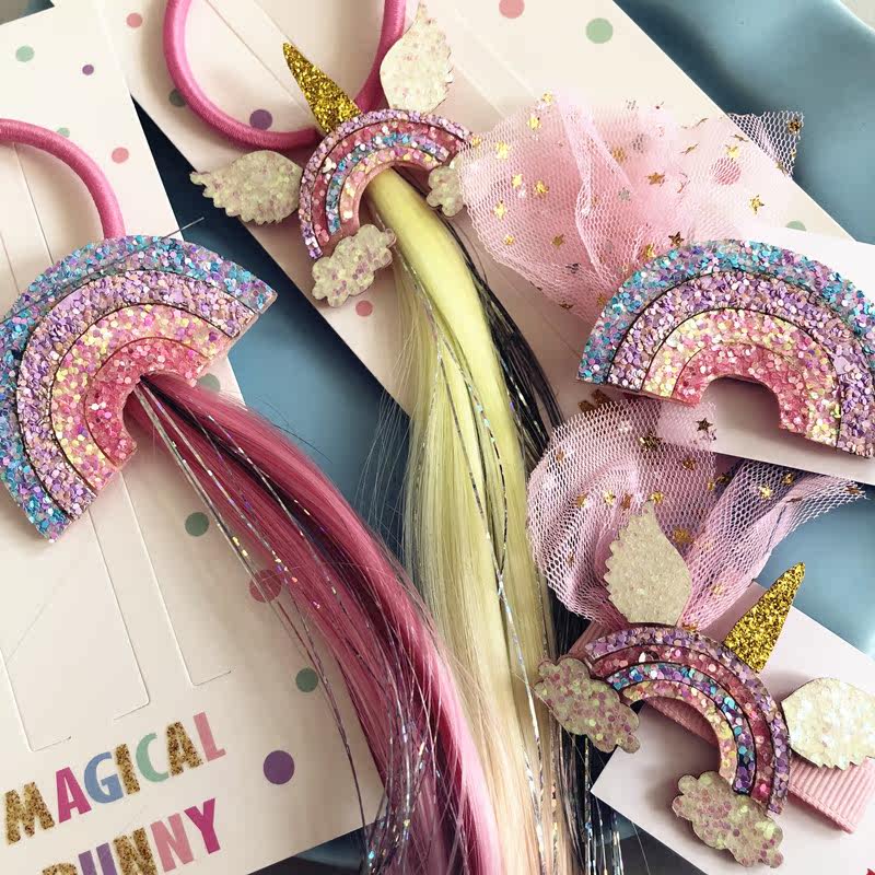 Gigi Magic House foreign trade children's Unicorn wig clip seed girl hair accessories 2-piece set