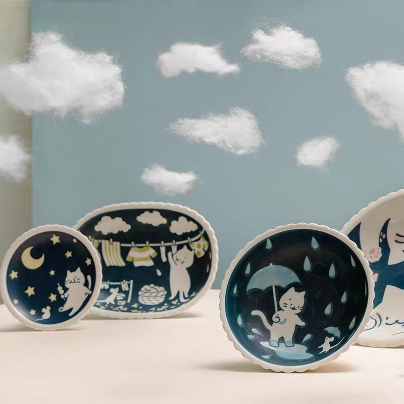 Japan Original Clothing Import AITO Beauty Thick Burning Cute Kitty Ceramic Plate Sushi Home Creative Breakfast Pan Pan