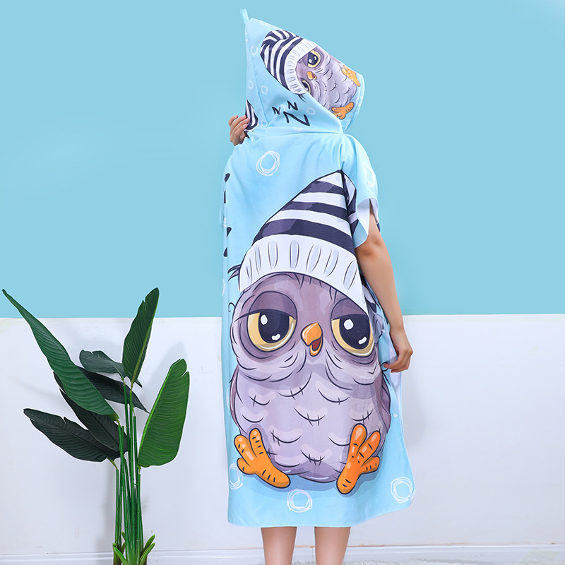 (with cap bathrobe) shark 110 x 90cm (with cap bathrobe) owl 110 x 90cm (with cap bath robe) Blue bubbles 110 x 90cm (with cap bathrobe) pineapple 11