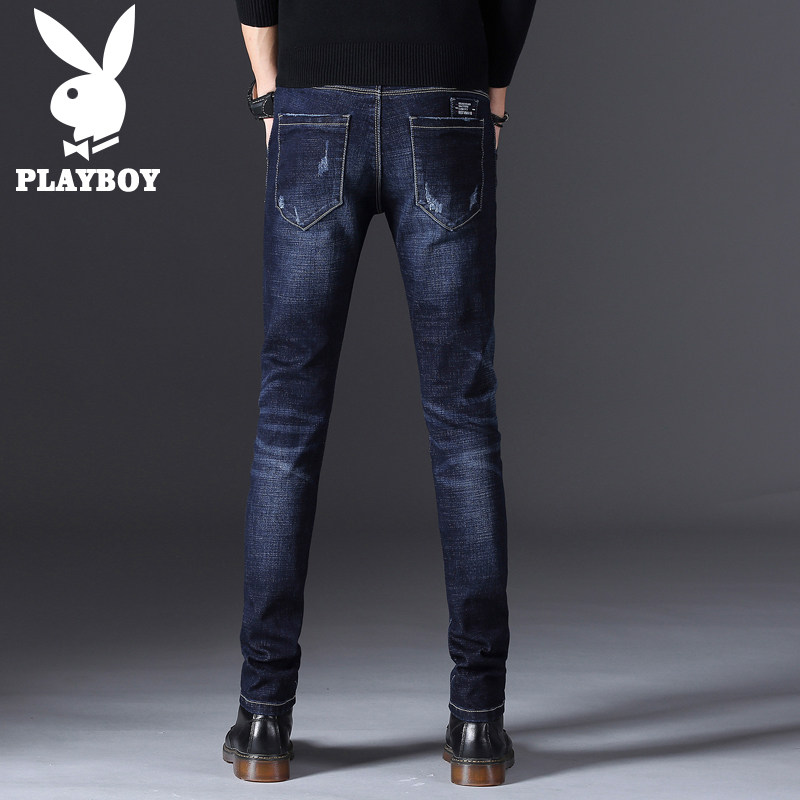 Playboy stretch jeans men's slim feet autumn 2023 new trendy brand blue long pants men's pants