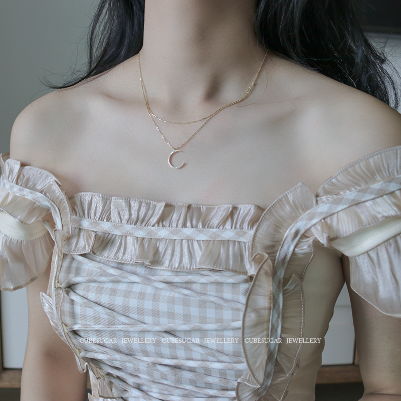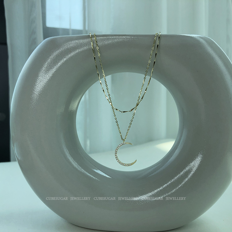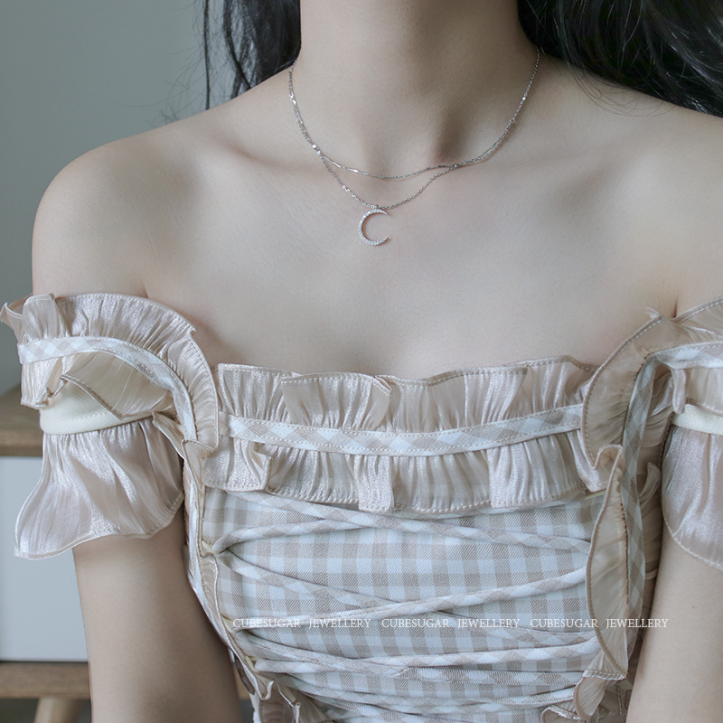 Super Fairy 925 silver inlaid moon necklace red retro in light luxury small minimal kock chain woman