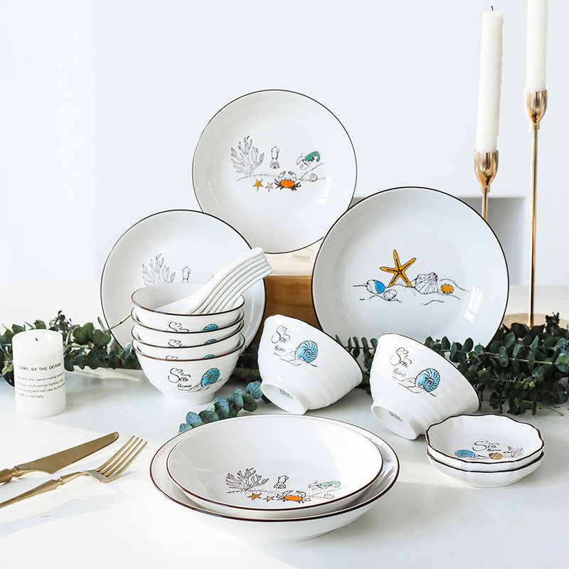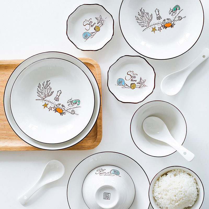 Shunxiang Ceramics New Hope Home Plate Set Small Fresh Plate Plate Hand-painted Tableware Set Nordic Simple