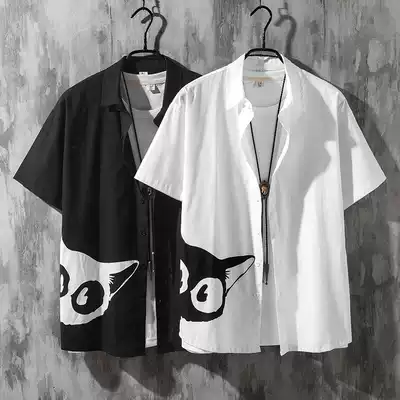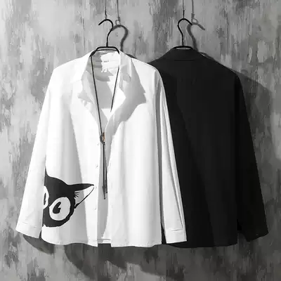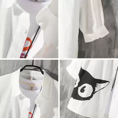 Summer Gangfeng Japanese workers handsome shirt men's long sleeves loose large size shirt trend seven-point sleeve jacket men's