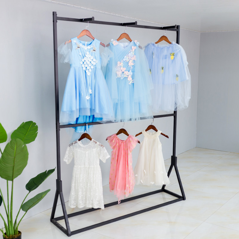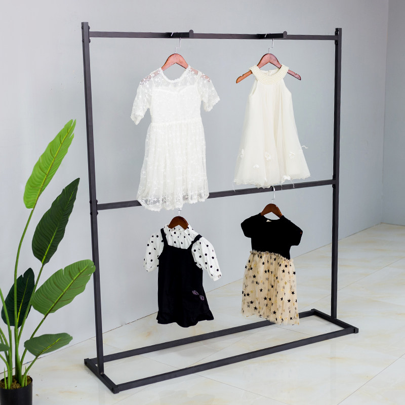 Simple clothing store upper and lower double-layer combined floor-to-ceiling display rack double-pole middle island gantry display hanging clothes rack
