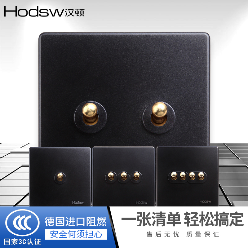 Hanton Switch Socket BE Black Brass Dial Bar Imitation Ancient Double Switch Single Control Double Cut Open Switch 86 Duplex Hotel