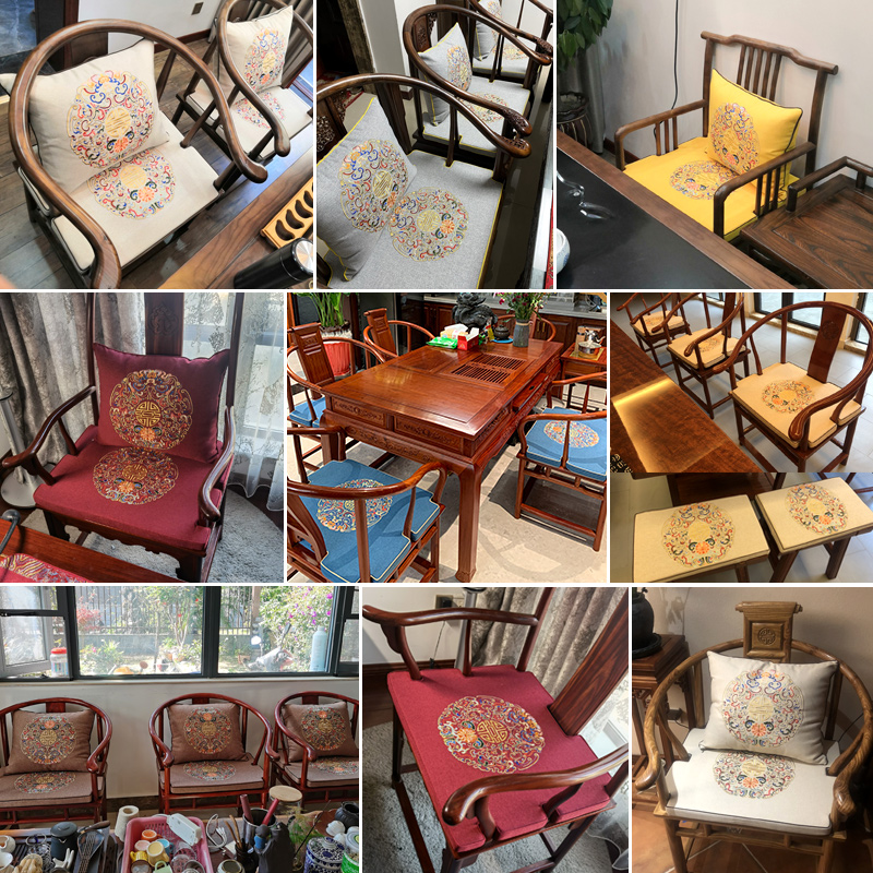 Chinese Red Wood Chair Cushion Taike Chair Circle Chair Solid Wood Furniture Sofa Official Hat Tea Chair Cushion Latex Seat Cushion Custom