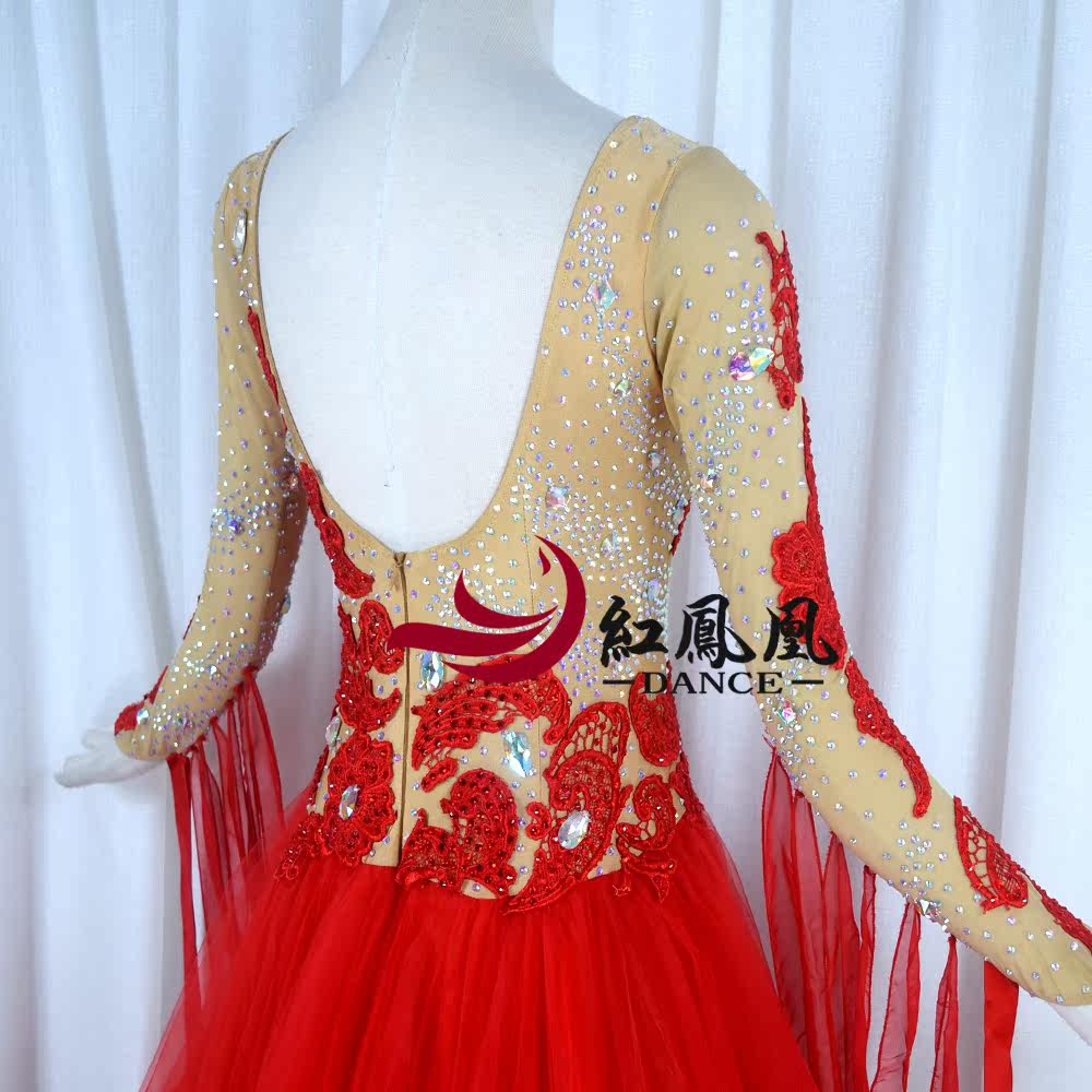 Red Phoenix New Morden Dance Professional Competition Dress Fluffy Dress Customised National Waltz acting out of BR892