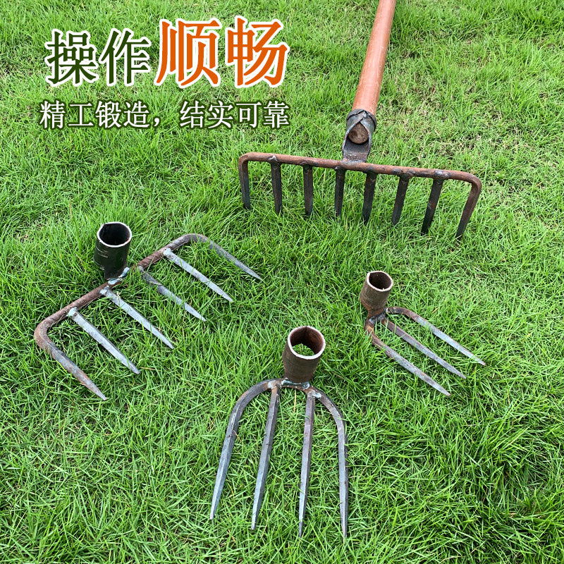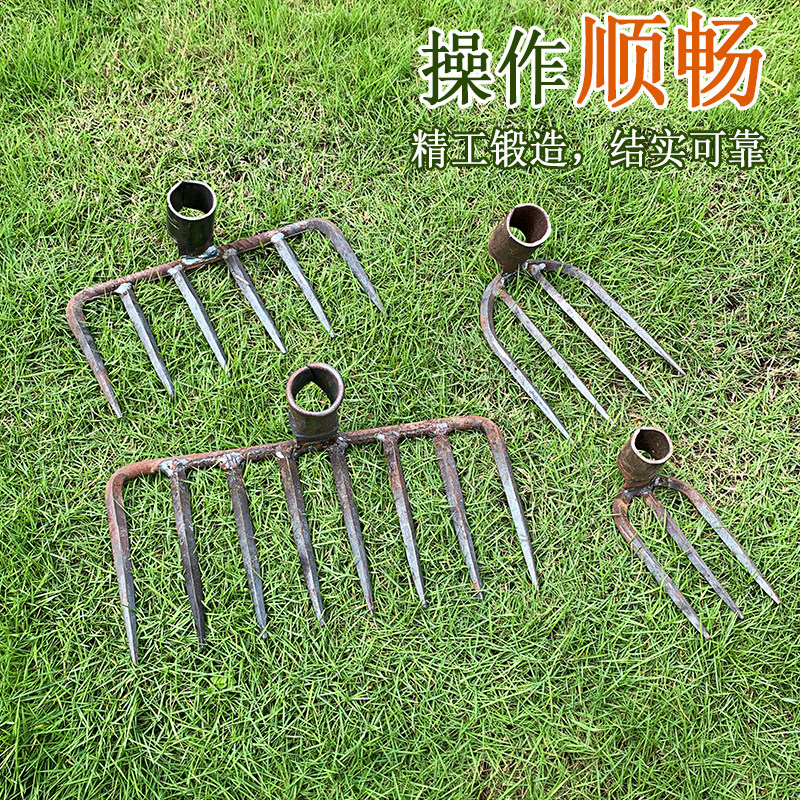 Forging agricultural tools four-tooth nail rake grilled grass iron rake agricultural tools household flat turning soil loose earth artifact rake