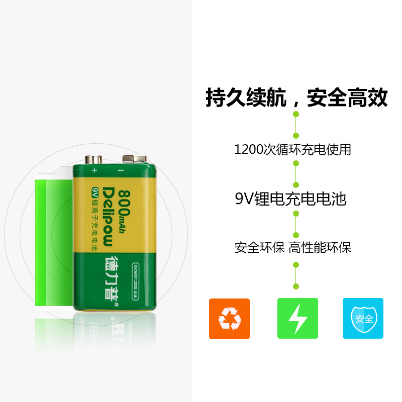 Delip 9V lithium rechargeable battery 800 mAh large capacity 6F22 microphone Wanuse meter instrument instrument