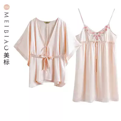 American19 Momi heavy silk suspender nightgown nightgown two-piece sexy bathrobe pajamas Mulberry silk home service