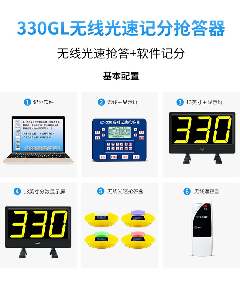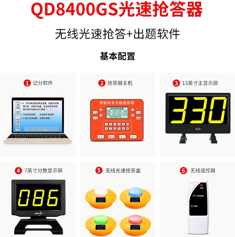 QD Lightspeed Answer Box (Battery Model) QD Lightspeed Answer Box (Charging Model) MC Lightspeed Answer Box (Charging Model) 7-inch Scoring Display 13-Inch Scoring Display 13-Inch Main Display 23-Inch Scoring Display QD8300 Host QD8400 Host MC330 HOST 8400CS-4 Group 8400GS-4 Group 330GS-4 Group 8400LS-4 Group 8400GL-4 Group 330FS-4 Group 330GF-4 Group 1000 Minus 200 and so on