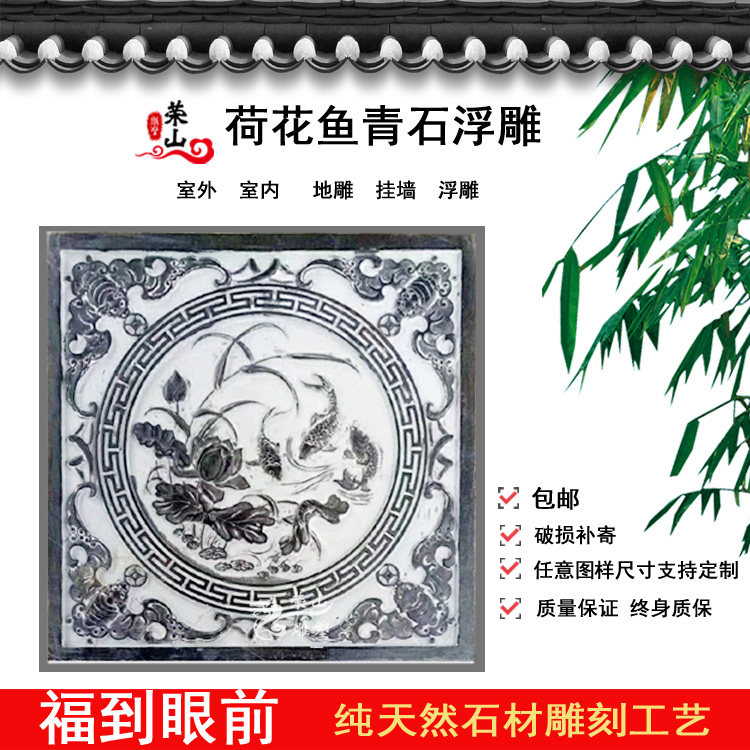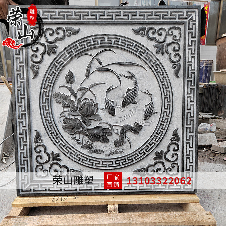 Stone carving embossed ground carving wall background wall blessing lettering carved courtyard antique Dali porch mural bluestone floor tiles