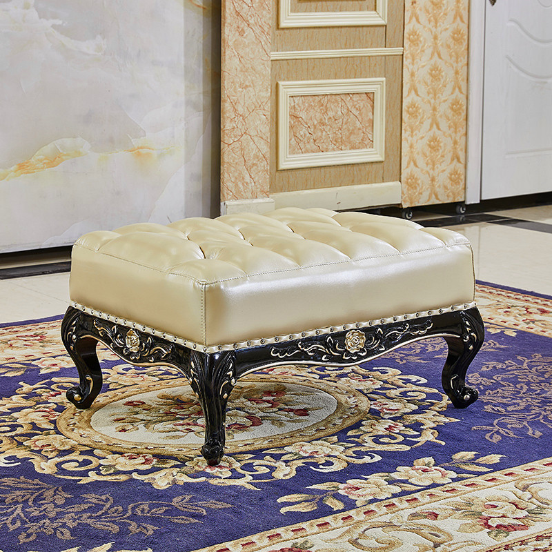 European-style pedal home sofa foot stool ebony color shoe change leather stool bed end stool solid wood carving