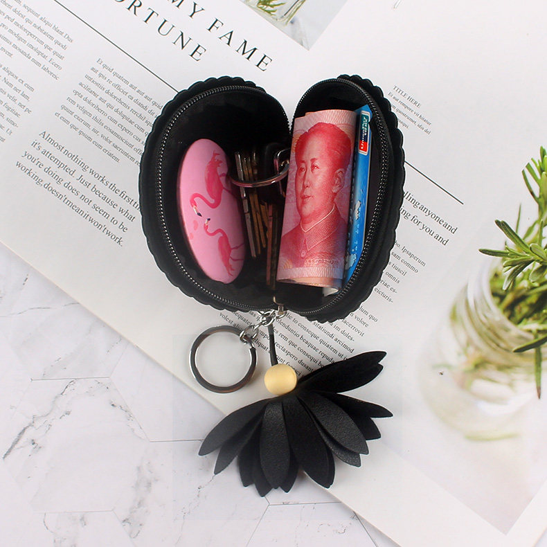 Flower pendant coin purse-pink flower pendant coin purse-black flower pendant coin purse-blue flower pendant coin purse-khaki