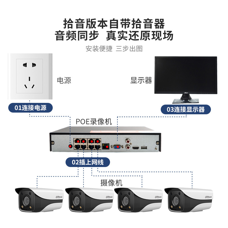 Dahua 4 million double light night vision full color camera poe network outdoor waterproof monitor HD set equipment