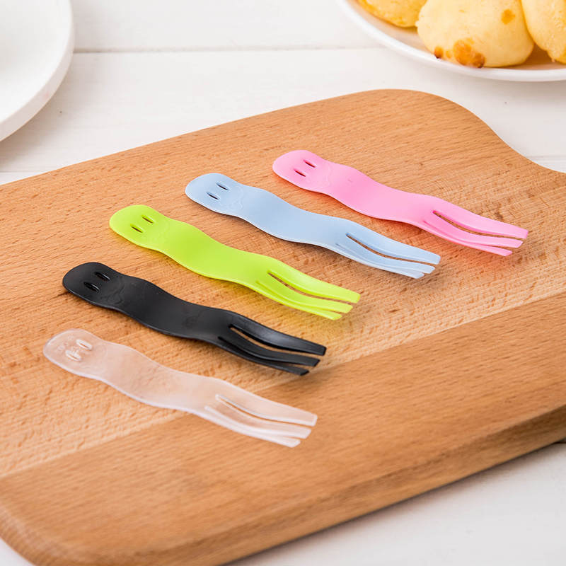 Plastic disposable fork Fruit fork Cake fork Independent packaging dessert smiley face fork Wavy three-tooth fork