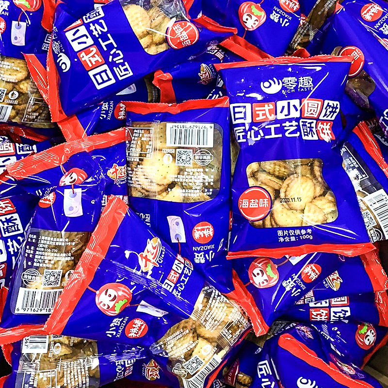 Net red Japanese small round cake Sea salt zero casual snack Bulk supper hunger Small package Multi-taste biscuit New year's goods