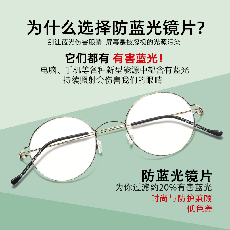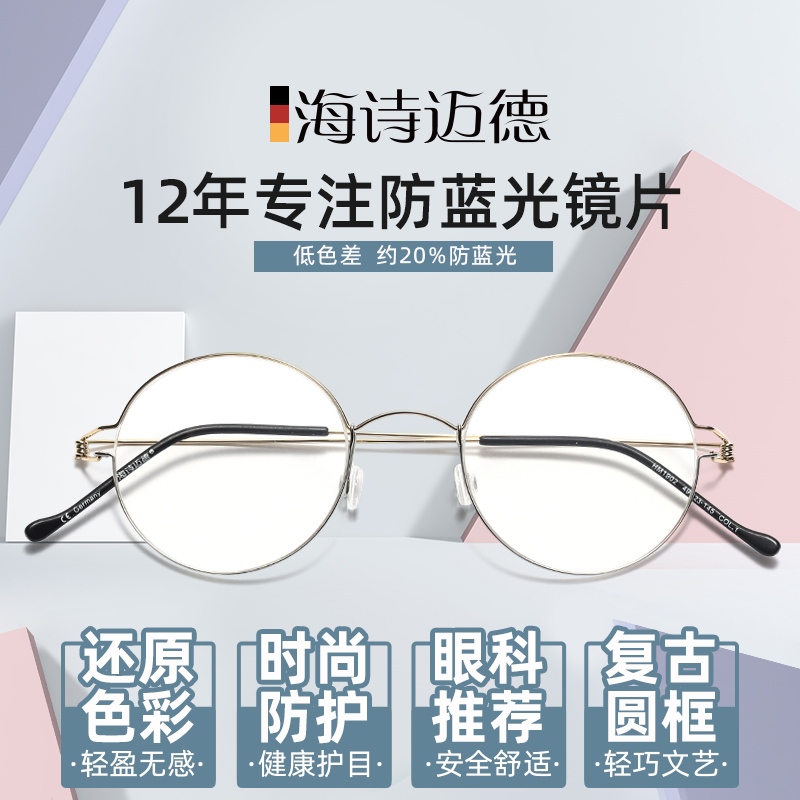 Hisemide anti-blue light glasses can be equipped with myopia glasses frame computer goggles flat light thin edge round frame trendy men and women