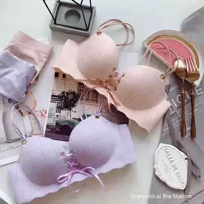 Japanese drawstring lace no trace girl bra small chest medium thick style gather strap without steel ring underwear bra