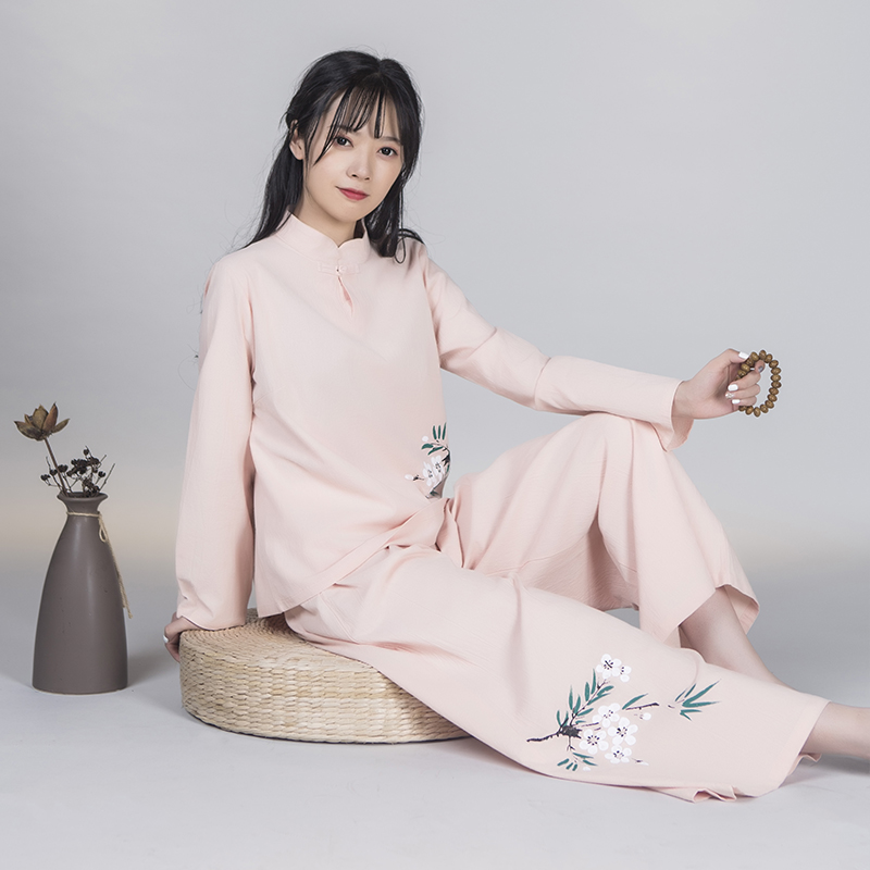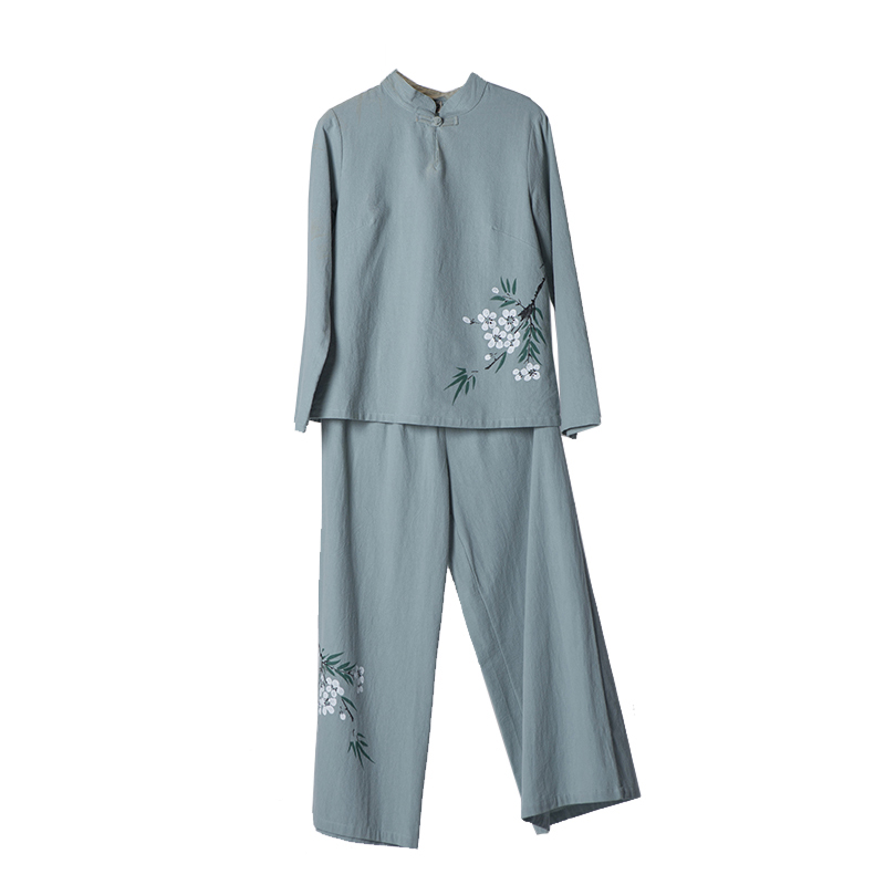 Shyan women's tea Zen Zen Willi Tea Art Costumes Folk Customs Mansuit Qipao Style 1912 Printed Zen Suit Suit