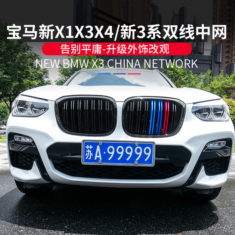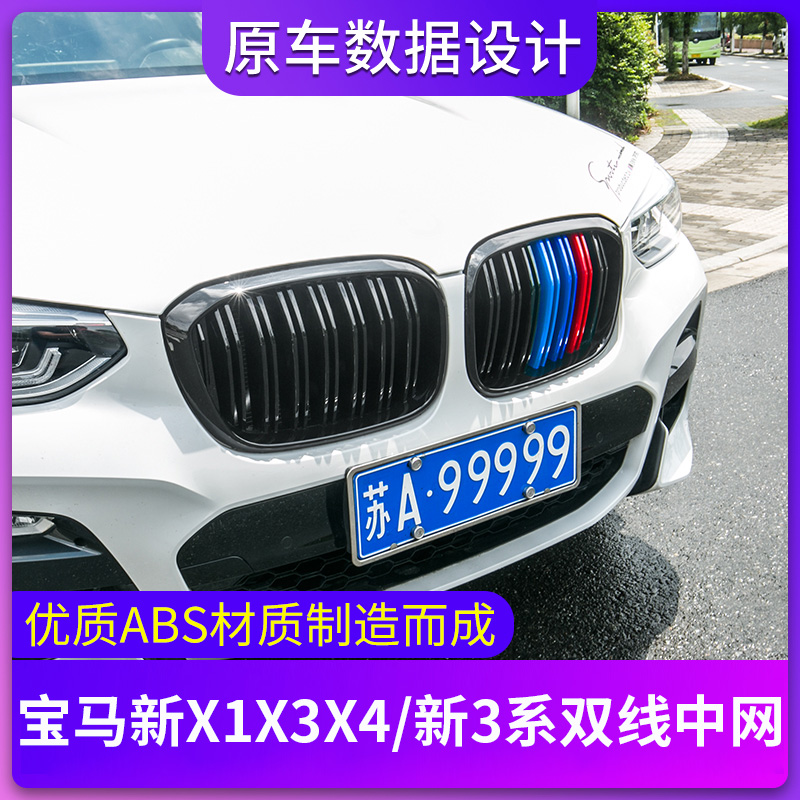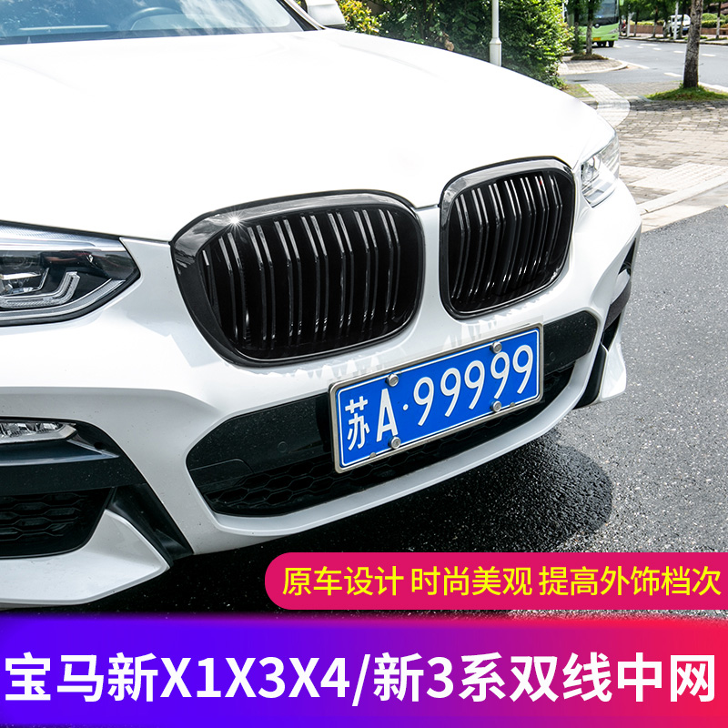 The new BMW X1 X3X4 double line mesh frame 2020 new 3 series special modified double bar bright black midnet decoration