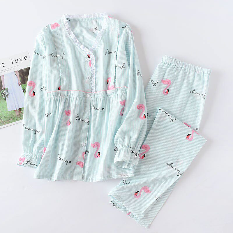 Maternity pajamas Monthly clothes Summer thin postpartum lactation lactation clothes pure cotton gauze breathable July 6 maternity
