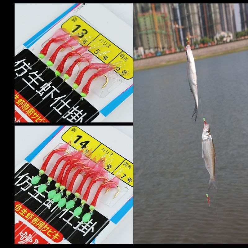 Wool hook hooks Luya fake shrimp sea fishing white hook shrimp skin hook fake bait squid string hook luminous fish skin hook group