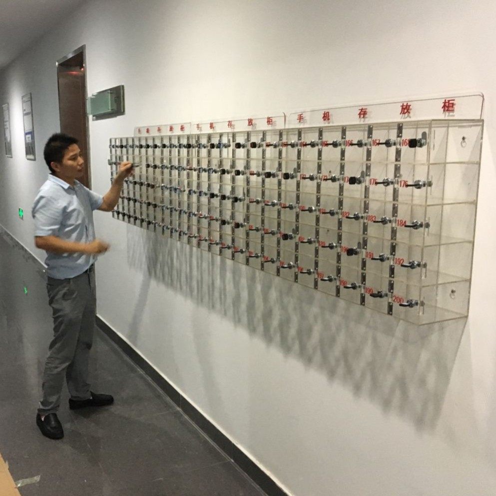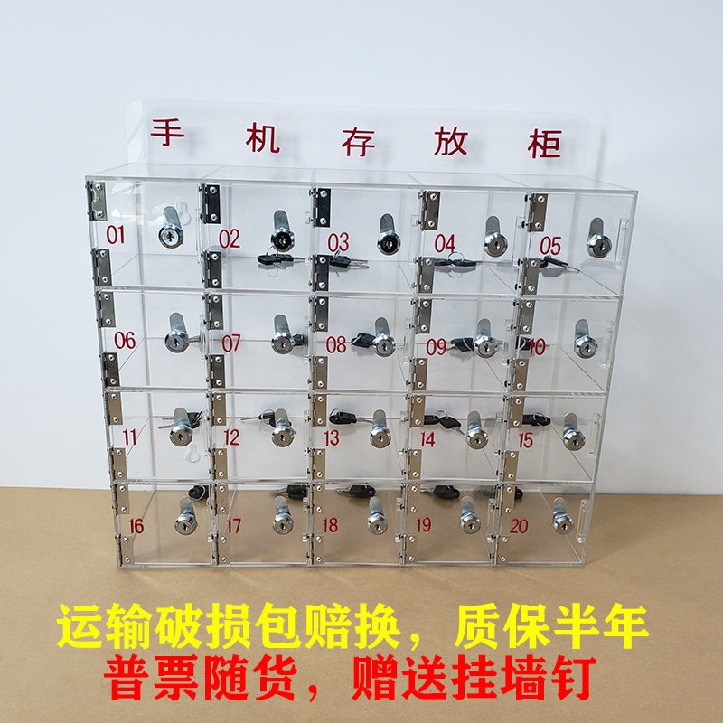 Customized transparent acrylic mobile phone storage cabinet employee fire collection cabinet factory mobile phone storage storage box lock