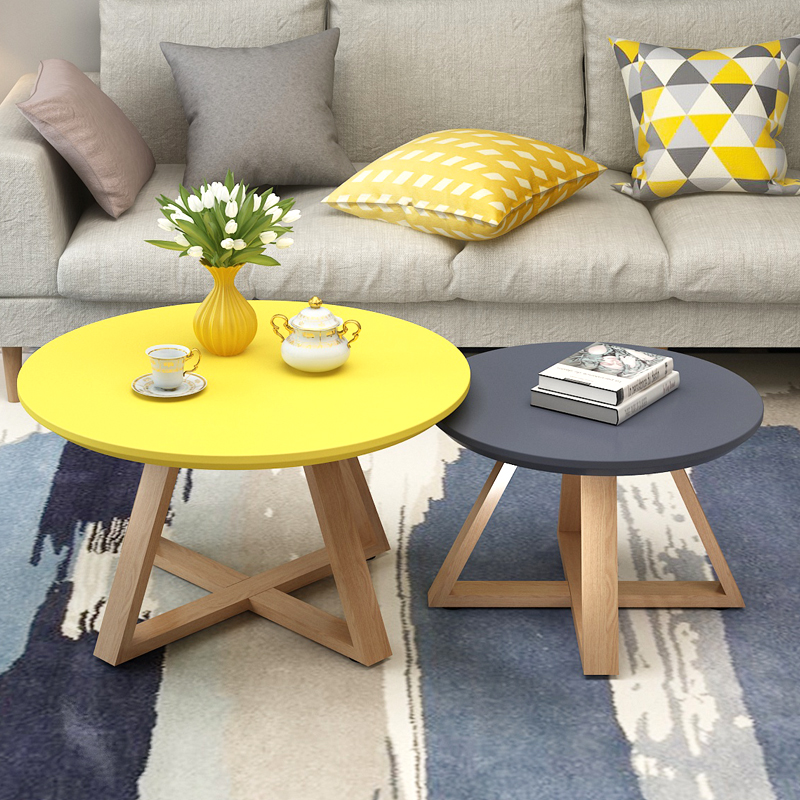 Tea table Nordic modern minimalist solid wood living room round tea table high and low combined creative triangle small tea table