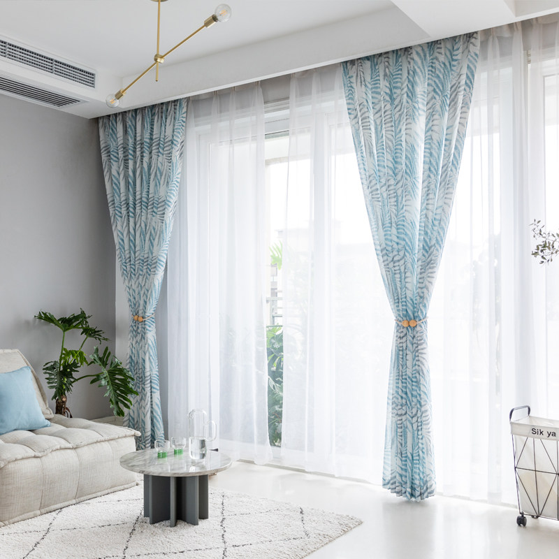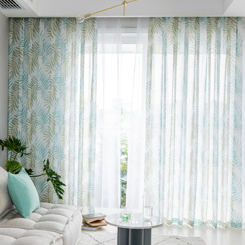 Nordic plant leaf curtain screen curtain American pastoral living room Bedroom bay window Dining room partition custom screen curtain Qingye